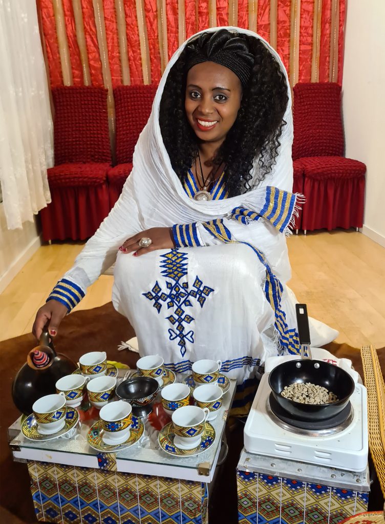 In Äthiopien lernen schon die kleinen Mädchen von ihren Müttern oder den älteren Schwestern wie man eine traditionelle Kaffeezeremonie macht. So habe auch ich als 8 jähriges Mädchen interessiert zugeschaut und gelernt, wie man den Kaffee richtig zubereitet und die Zeremonie mit all ihren Bräuchen richtig durchführt.